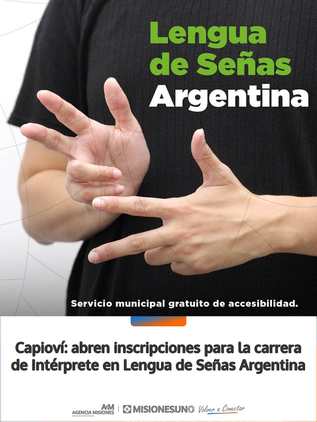 AGENCIA MISIONES.UNO | La Municipalidad de Capioví informó que se encuentra abierta la inscripción para la Extensión Áulica local de la carrera “Intérprete Universitario en Lengua de Señas Argentina Español (IULSA)”, con propuestas formativas y actividades previstas para el mes de mayo.