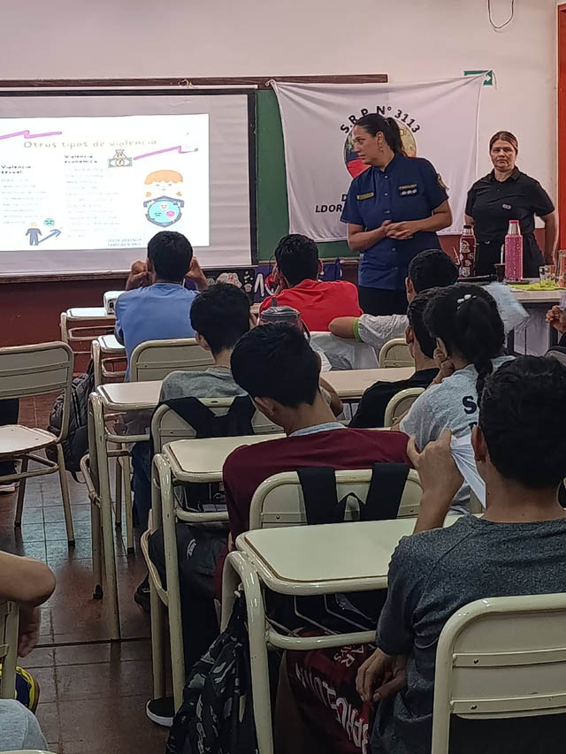 La charla estuvo a cargo del equipo interdisciplinario de la Comisaría de la Mujer, con la participación de la psicóloga oficial principal Soledad Hoffman, junto a personal de la División Policía Comunitaria de la Unidad Regional IV, encabezado por la comisario Noemí Gómez. También formó parte el equipo del CEMOAS Puerto Rico, liderado por la alcaide Valeria Candia y la subayudante Brisa Rodríguez.