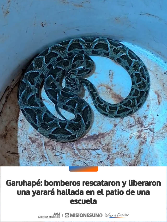 Bomberos de Garuhapé llevaron adelante el rescate y posterior liberación de una serpiente yarará que había sido hallada en el patio del BOP N° 27, generando preocupación en la comunidad educativa.