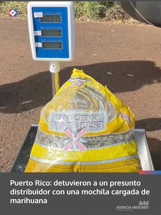 Durante un operativo preventivo realizado este martes en la localidad de Puerto Rico, efectivos policiales interceptaron a un hombre que transportaba marihuana en una mochila. Tras las pruebas correspondientes, se confirmó la sustancia y se procedió a su secuestro, quedando el involucrado a disposición de la Justicia.